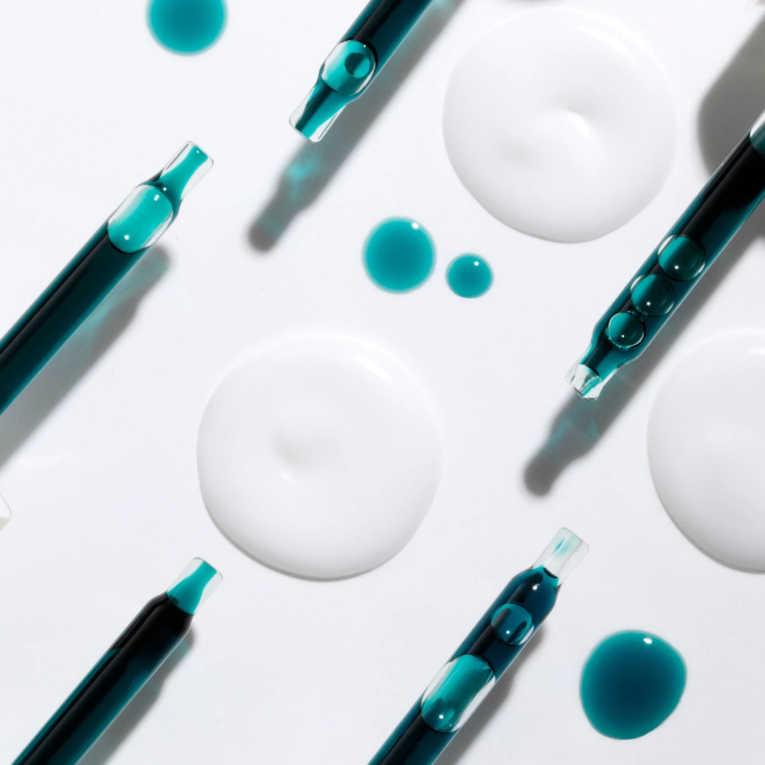 BLUE TANSY, GERMAN CHAMOMILE, AND CAPE CHAMOMILE ESSENTIAL OILS: Deep blue-green oils, rich in potent azulene. Wonderful for soothing the look of surface redness — produced using a Zero Waste Oil Process!